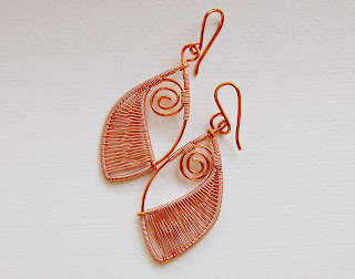 Non-tarnish copper wire wrapped into a simple, elegant pendant and earring set.